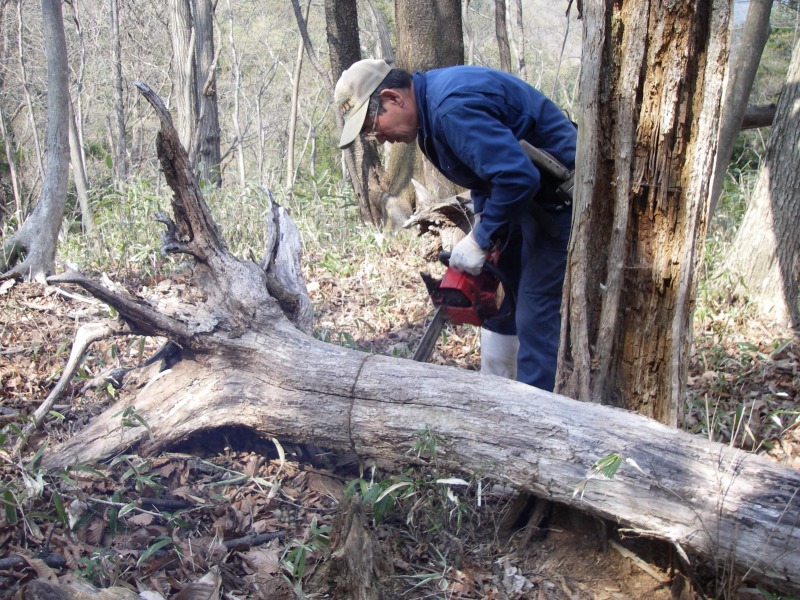 邪魔になる枯れ木はチェンソーでまっぷたつなのだ!でも誰もこの木を邪魔にしないのだ!要は本人が単に切りたいのだ!!(*^_^*)